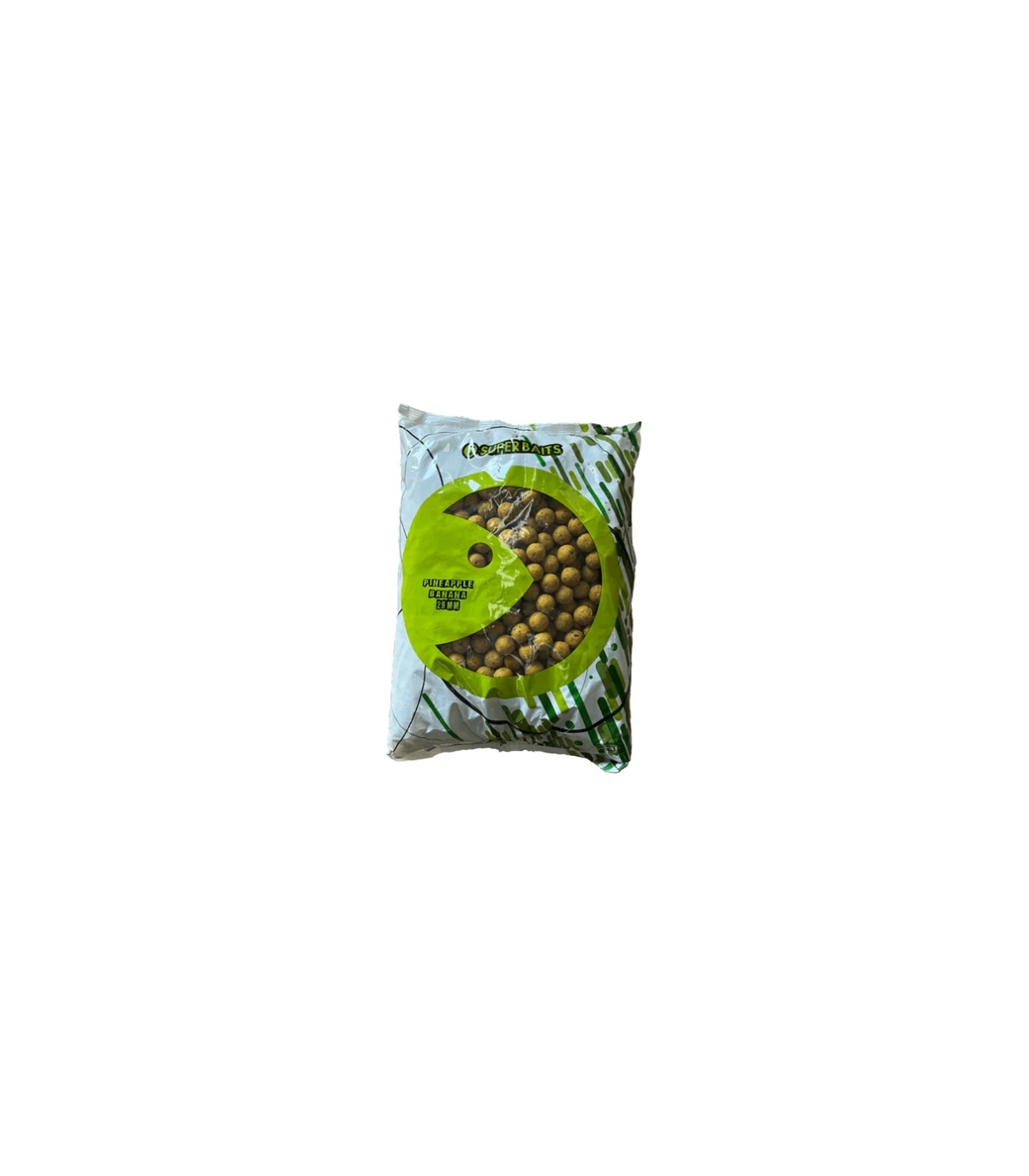 Bolsa de boilies de la marca Superbaits sabor Piña Banana y color amarillo de primera calidad, especial para la pesca de carpfishing.