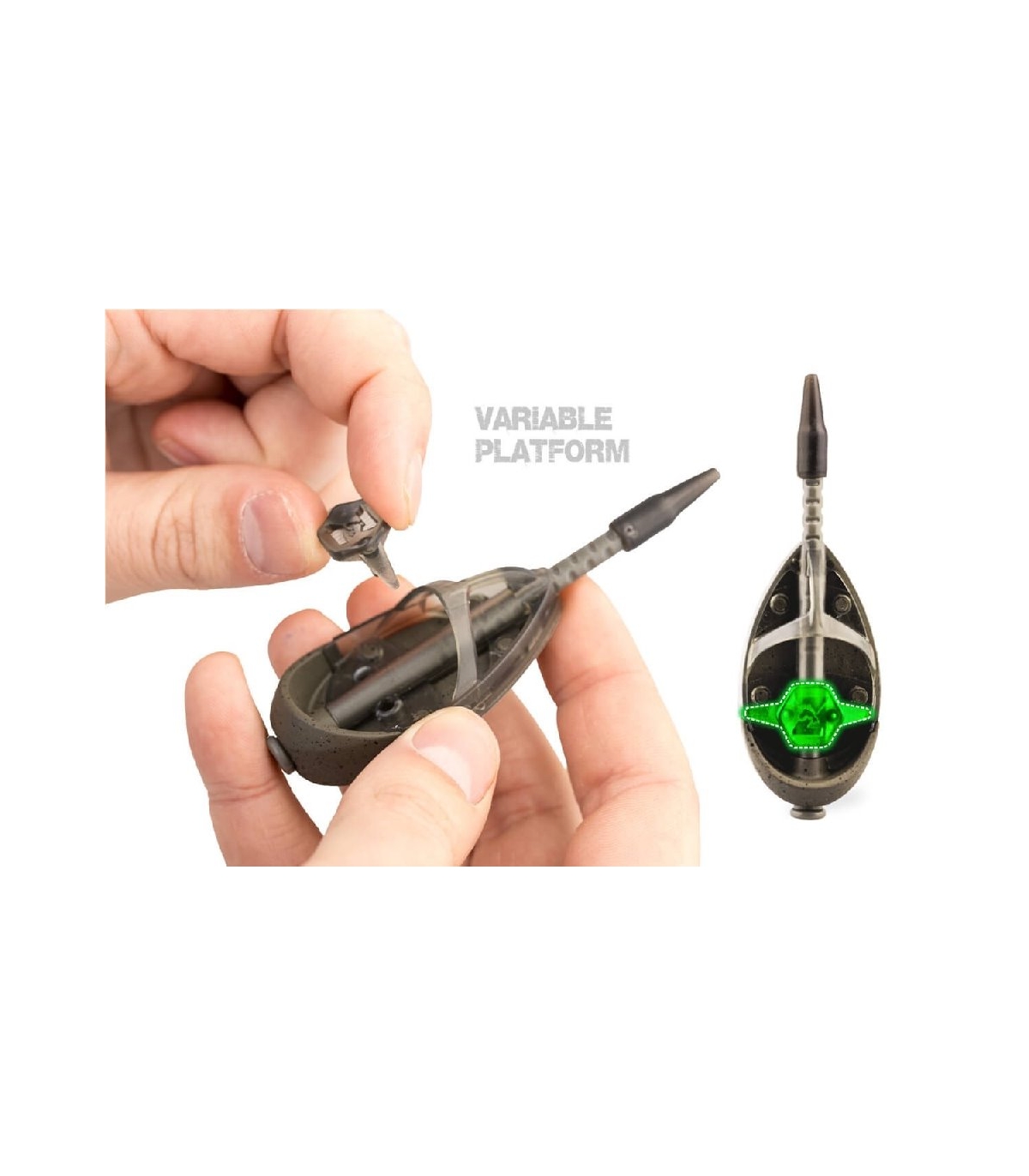 Plataforma extraíble: colocación precisa del anzuelo con cebo directamente en la mezcla de cebo para una presentación perfecta.