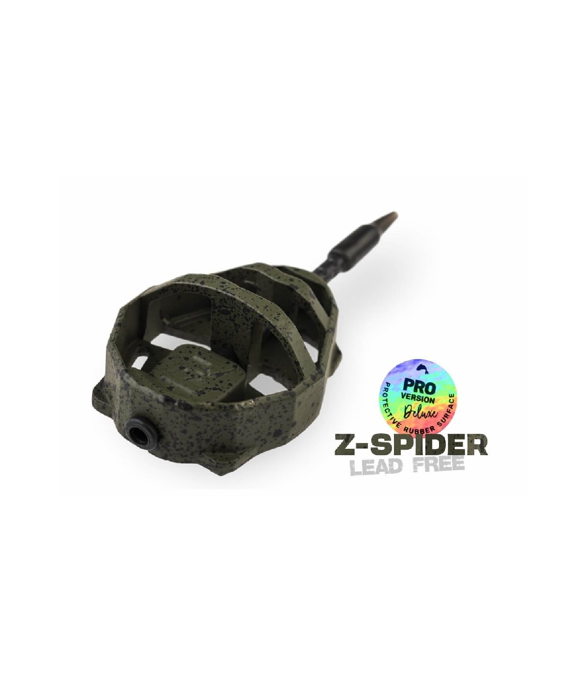 Los alimentadores están fabricados con material sin plomo en un acabado de goma verde mate con motas negras, lo que garantiza un camuflaje perfecto en el fondo y minimiza las molestias para los peces.