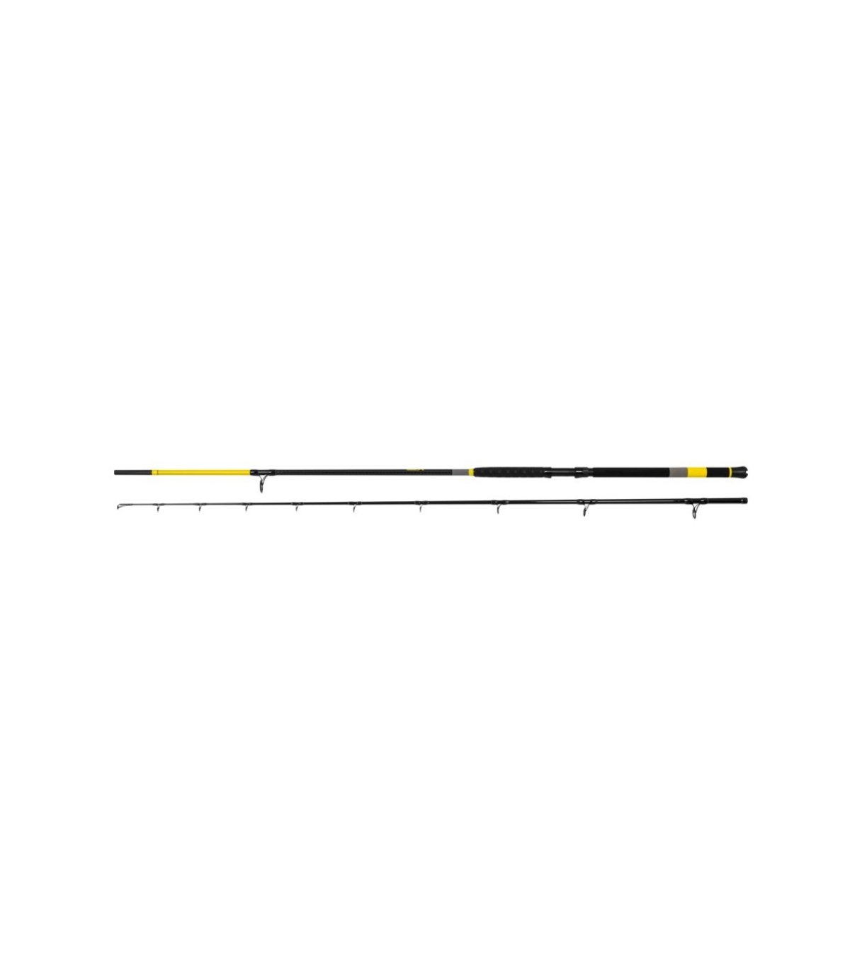 Gama de seis cañas diseñadas para la pesca desde la orilla.